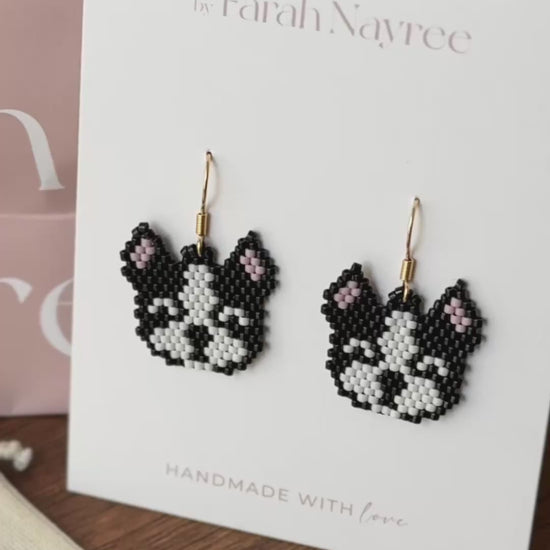 Aretes tejidos a mano de unos lindos Boston Terrier 🖤