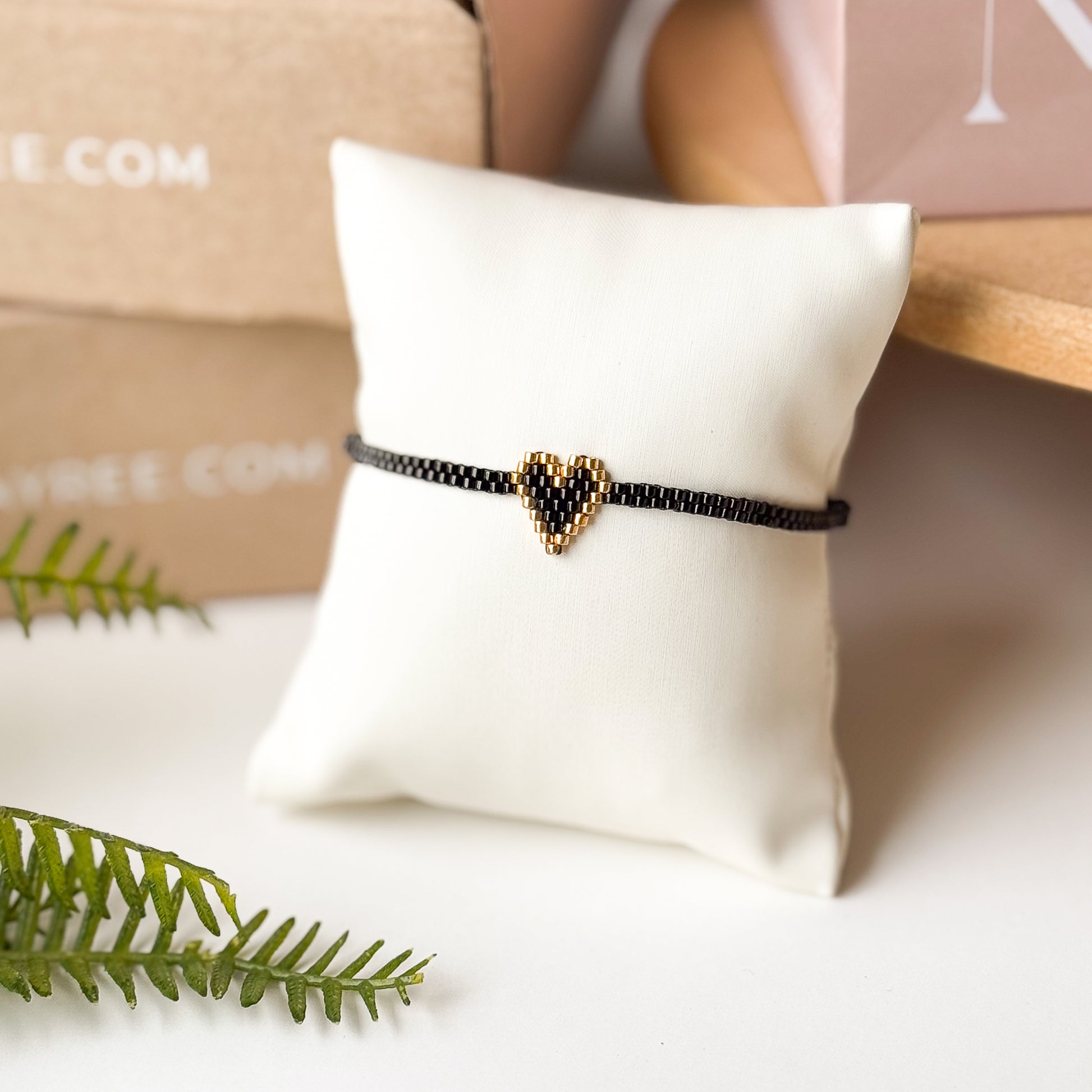 Pulsera de corazón en tonos negros y dorados, miyuki.
