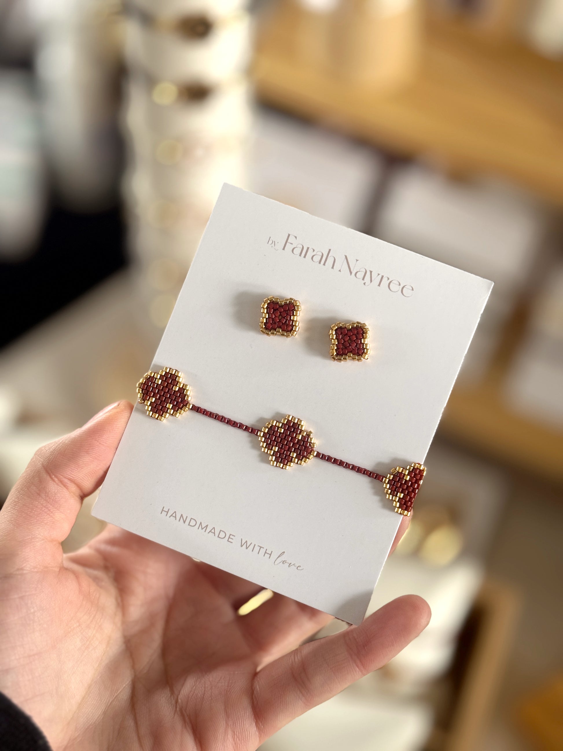 Hermosos tejidos en forma de trebol, en tonos rojo vino y dorado. 100% hecho a mano con cuentas Miyuki 🥰