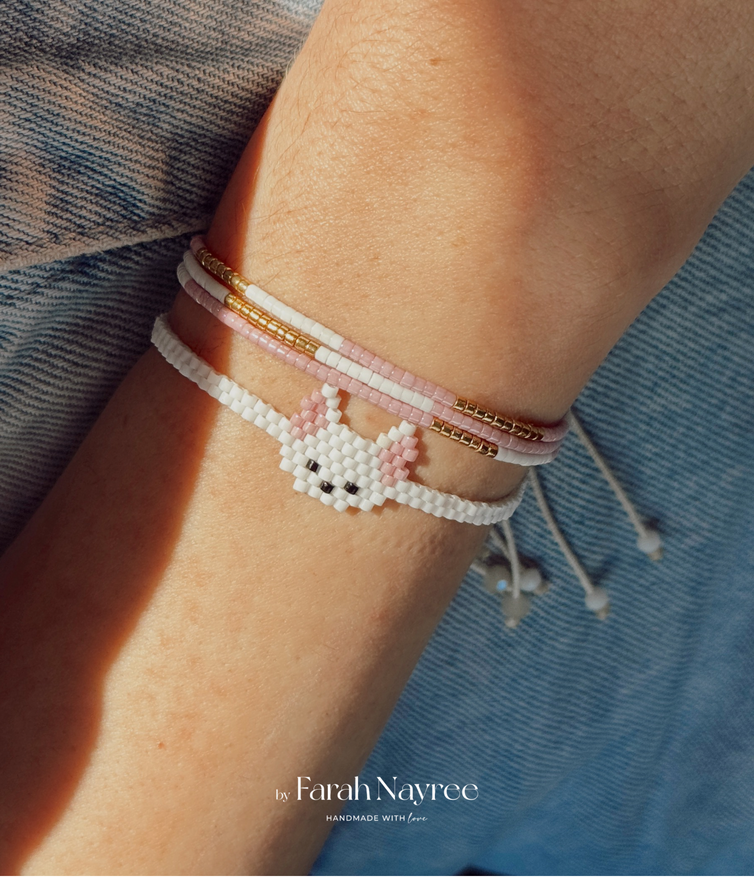 Pulsera de color blanca con la carita de un chihuahua 🫶🏻🤍 (No incluye la pulsera de 3 filas)