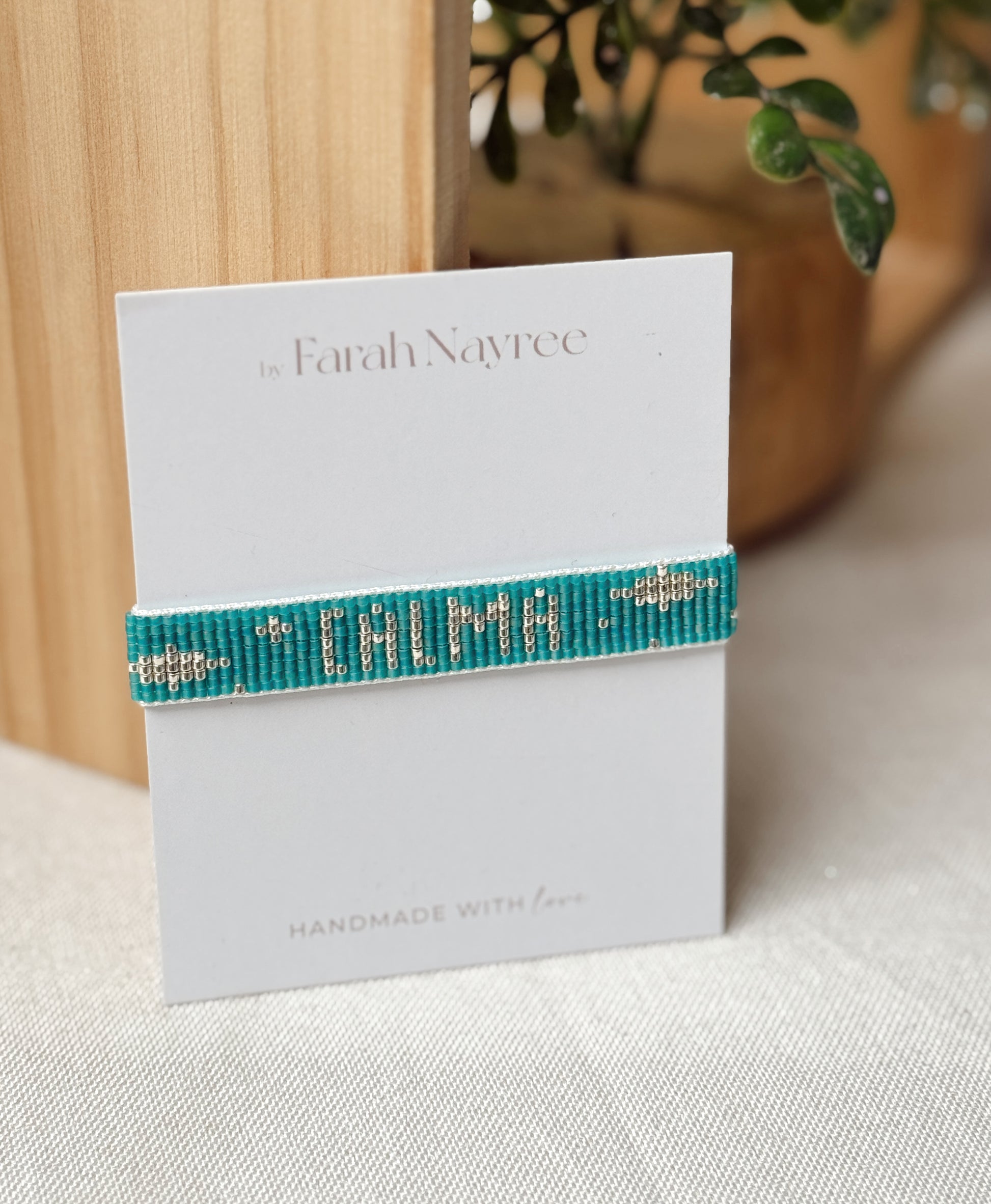Hermosa pulsera tejida de 9 filas en tonos turquesa y plateados 🩵